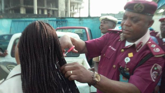 Vụ việc xảy ra tại Nigeria cơ quan an toàn đường bộ Nigeria. Chỉ vì phạt nhân viên bằng việc cắt tóc một chỉ huy cấp cao đã bị kỷ luật. Nữ nhân viên đã bị cắt tóc trong buổi duyệt diễu hành.