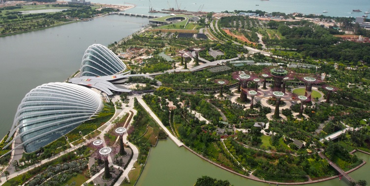 Ảnh chụp trên cao công viên tự nhiên "Garden by the Bay" nổi tiếng của Singapore
