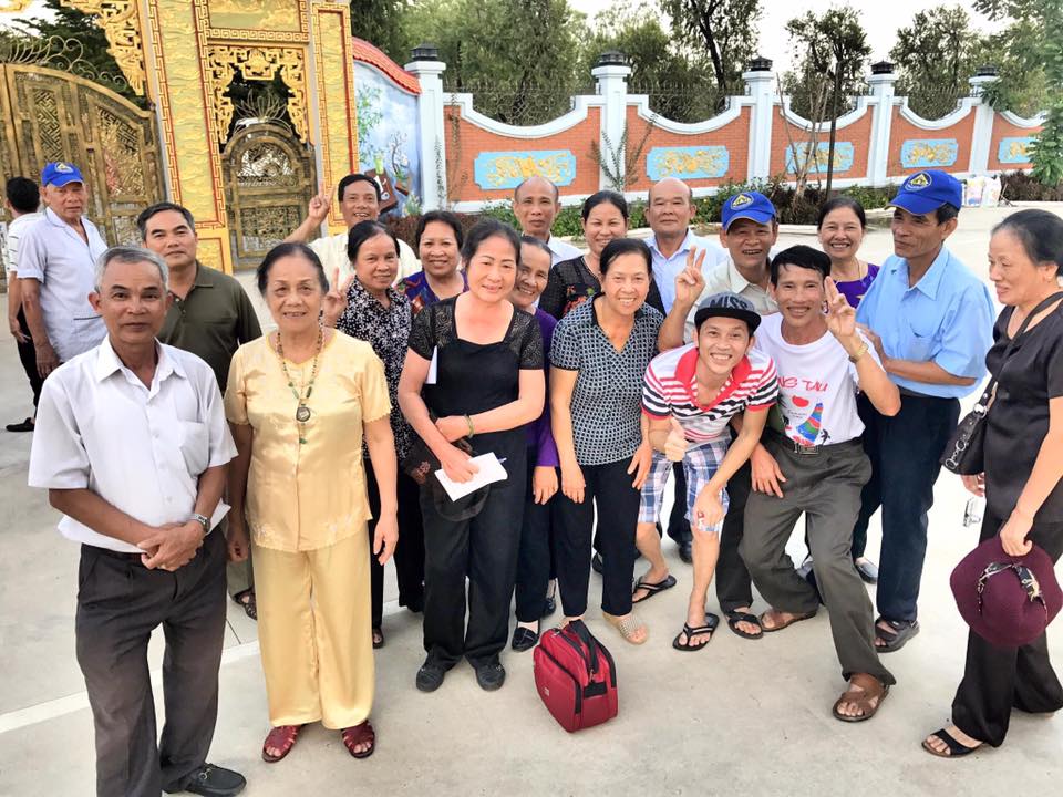 Bỏ ra số vốn gần 100 tỷ đồng để xây nhà thờ Tổ, nghệ sĩ Hoài Linh không coi mình là một người có tiền hay có thế. Anh vẫn giản dị chân phương, chụp hình và gửi lời cám ơn tới các vị khách đến thăm đền thờ Tổ (Tâm Linh Việt).