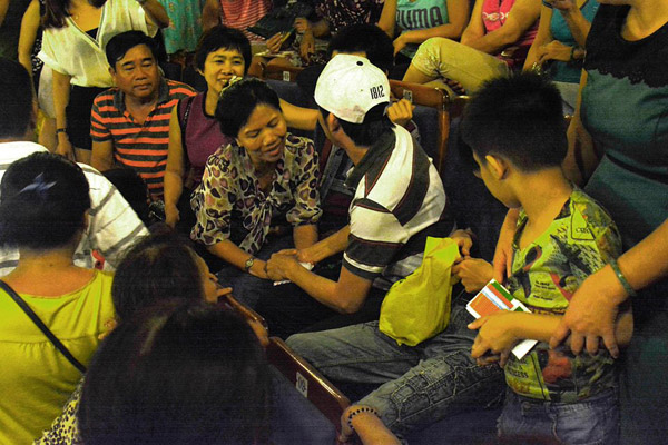 Nghệ sĩ Hoài Linh chụp hình cùng khách tới thăm nhà thờ Tổ sân khấu