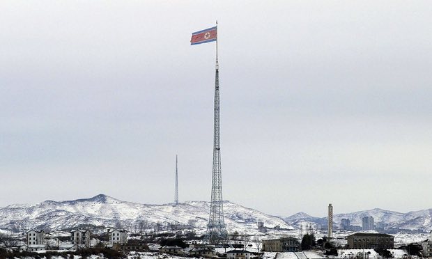 Cờ Triều Tiên được treo cao ở vùng biên giới