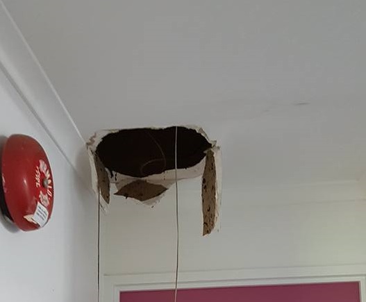 Chantal Vaughan, chủ hữu phòng tập gym Bokwa CQ ở Queensland nước Úc, đến phòng tập của mình hôm 18.4 sau khi nghỉ làm 3 ngày và phát hiện một lỗ thủng lớn trên trần nhà.
