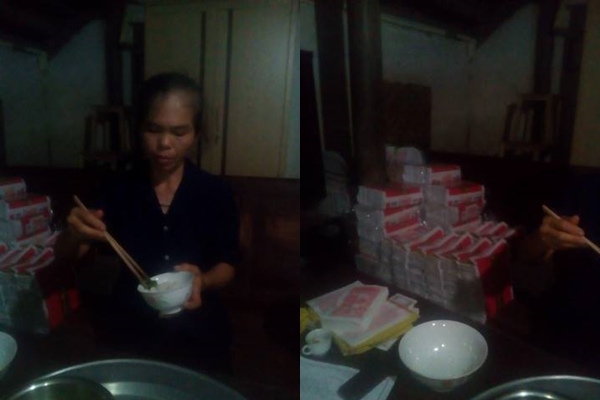 Nhà em giờ chỉ nuôi được con bò, mấy con gà con chó, với cả mẹ nhận thêm làm vàng mã, gấp rồi đóng túi cho người ta, giá 1 túi là 1.500 đồng. Tính ra 1 ngày, mẹ làm được 6.000 - 8.000 tiền công thôi..." - Thiện kể.
