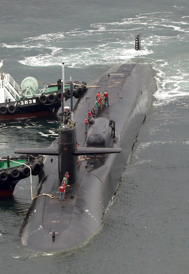 Hôm qua, một trong những tàu ngầm lớn nhất của Mỹ cũng đã cập cảng Hàn Quốc. Tàu USS Michigan có thể phóng hơn 150 tên lửa Tomahawk nhằm vào các mục tiêu ở sâu trong đất liền Triều Tiên.