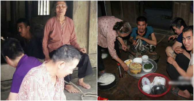 Nhiều năm nay bà Lực phải tự tay chăm sóc 6 đứa con điên dại của mình.