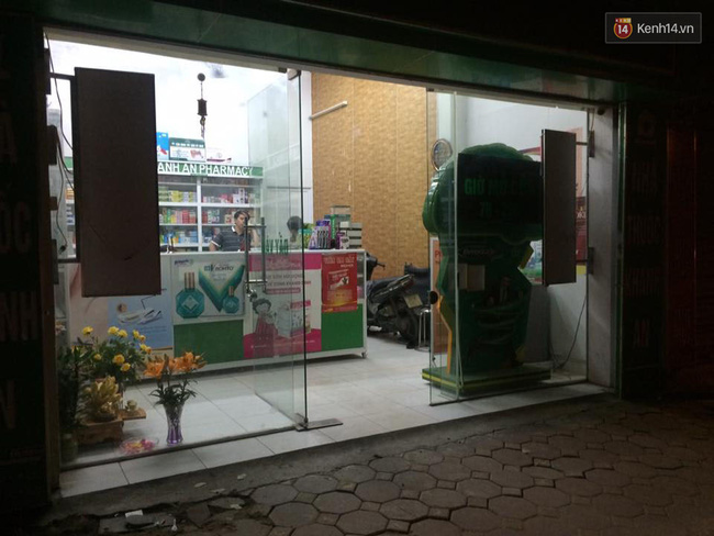 Quầy thuốc nơi Linh trộm xe ô tô sang rồi lái xe bỏ chạy.
