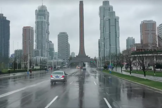 Trong đoạn video, những con đường ở thủ đô Bình Nhưỡng dường như có gì đó khác thường khi vắng mặt những hoạt động giao thông hối hả và nhộn nhịp của người dân thành phố mặc dù thời tiết xấu có thể giải thích điều đó.