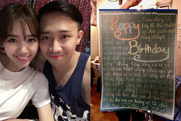 Sinh nhật Trấn Thành, ngày 5/2, Hari Won đăng ảnh hai vợ chồng trên trang cá nhân và viết: "Thưa chồng, chúc mừng sinh nhật chồng lần thứ 30. Chồng đă vào con số 3 đầu, vợ cảm thấy... không cô đơn nữa, được an ủi lắm. Vui ghê. Chồng ơi thương chồng lắm". Một ngày trước đó, cô đă bí mật chuẩn bị bánh kem và hoa để mừng sinh nhật ông xă ngay trên sân khấu. Trước những hành động ngọt ngào của Hari Won, Trấn Thành không quên nói lời cảm ơn bà xă trên trang cá nhân: "Cảm ơn em đă đến bên đời anh như một món quà định mệnh để cùng anh bắt đầu một chặng đời mới. Cảm ơn tất cả".