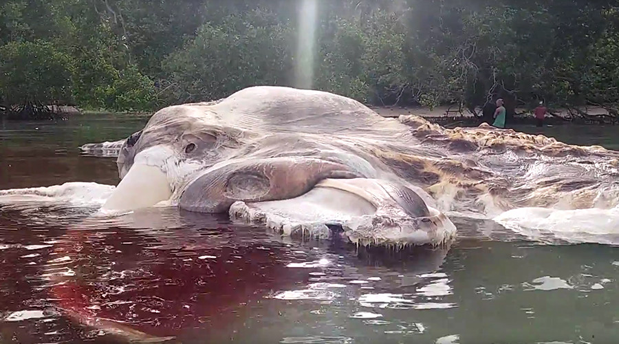 Những người chạy thể dục đã phát hiện xác thối rữa của một sinh vật bí ẩn trên bãi biển Huamual ở Indonesia. Xác sinh vật không lồ được xác định có chiều dài khoảng 22m.
