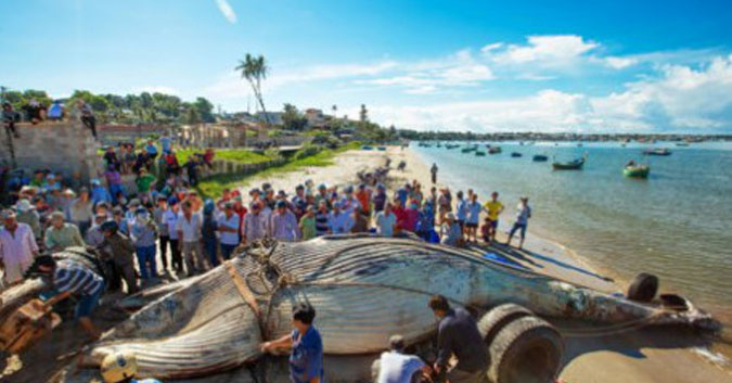 Mới đây một ngư dân đã phát hiện xác một con cá voi khổng lồ nặng gần 15 tấn trên biển Mũi Né,Bình Thuận.Sau đó con cá voi này đã được người dân tiến hành chôn cất.Người dân ở đây còn bày tỏ lòng tôn kính đối với cá voi.