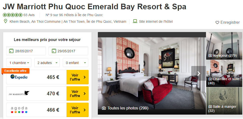Đây có thể coi là khu nghỉ dưỡng hot nhất thời điểm này tại Việt Nam khi được nhiều travel blogger, người nổi tiếng dành lời khen tặng. Cách sân bay 16 km, JW Marriott Phú Quốc nằm dọc theo bờ biển của khu vực bãi Khem, bên trong có nhiều phòng sang trọng, cao cấp, bể bơi và bãi biển riêng nên du khách hoàn toàn yên tâm về độ riêng tư. Adrian Anh Tuấn - Sơn Đoàn nghỉ tại căn Turquoise Suite tone màu xanh trắng, cửa sổ lớn nhìn ra vịnh biển, thiết kế cổ điển, tận dụng được nhiều ánh sáng thiên nhiên, mà hai người dành lời nhận xét là "đẹp ngỡ ngàng".