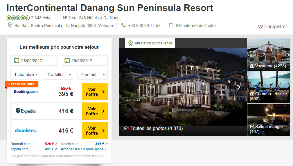Á hậu Huyền My trong một lần check in ở khách sạn. So với 2 khách sạn trên, Intercontinental có "thành tích" hơn khi giành được nhiều giải thưởng về khu nghỉ cao cấp quốc tế. Giá một phòng thuê từ 6 triệu đồng đến khoảng 20 triệu đồng một đêm.