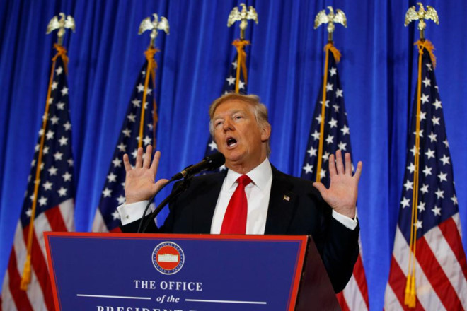 Trong cuộc họp báo đầu tiên sau khi đắc cử, ông Trump so sánh tình báo Mỹ với phát xít Đức. Ảnh: AP.
