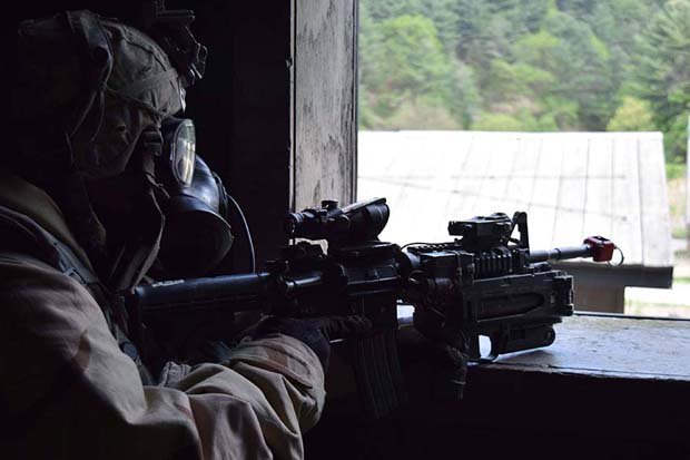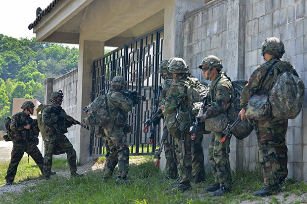 Từ một trực thăng, lính Mỹ luyện tập xâm nhập một cơ sở giả định của kẻ thù nhằm tăng cường năng lực phá hủy vũ khí hủy diệt hàng loạt một cách nhanh chóng. Các quân nhân Hàn Quốc cũng tham gia tập trận.