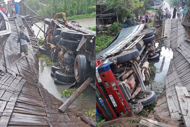Old  Default Cầu Tân Đức bị sập xe rớt luôn xuống sông vì chở quá tải
