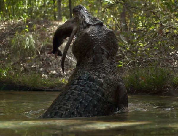 Đoạn phim được kênh khoa học Nat Geo WILD thực hiện đã ghi lại một màn săn mồi đáng sợ của cá sấu châu Úc. Trong đoạn clip này, một con wallaroo ( một loài chuột túi cỡ nhỏ) đã tiến sát bên bờ sông để uống nước mà không hay biết rằng bên dưới mặt nước, một “quái vật” đang chờ đợi mình.Một con cá sấu châu Úc đã âm thầm ẩn nấp bên dưới mặt nước, chờ khi con wallaroo đến gần đã lập tức tấn công. Con cá sấu sử dụng phần đuôi của mình như một đòn bẩy để đẩy cơ thể lên cao khỏi mặt nước, đồng thời sử dụng cặp hàm cắn chặt con mồi.