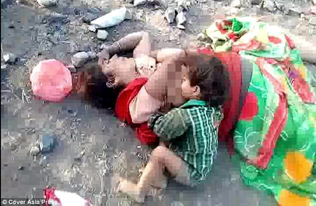 Cảnh sát đã được báo tin về một tử thi nằm gần đường ray ở Damoh, bang Madhya Pradesh, Ấn Độ vào sáng 24/5. Khi tới nơi, họ nhìn thấy một đám đông đang vây quanh một phụ nữ và đứa bé 17 tháng tuổi đang gào khóc thảm thiết.