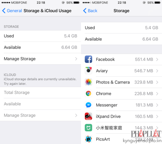 Hết dung lượng lưu trữ cũng là một trong những nguyên nhân khiến iPhone chạy chậm. Có rất nhiều cách để giải quyết vấn đề trên, người dùng có thể gỡ bỏ ứng dụng và cài đặt lại, đưa hình ảnh, video lên đám mây, xóa lịch sử lướt web trên trình duyệt bằng cách mở Settings (cài đặt) > Safari > Clear history and data (xóa lịch sử và dữ liệu).