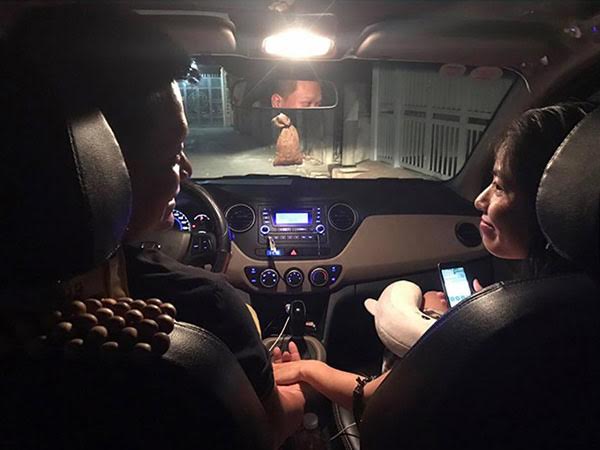 Mở cửa xe mình khá bất ngờ khi thấy trong xe còn có một người phụ nữ khác ngồi sẵn ngoài mình là khách và anh tài xế. Cũng có 1 vài câu hỏi chạy ngang qua trong đầu nhưng nghĩ bụng “mình cũng đi gần ý mà, thôi...”. Không để mình thắc mắc anh liền nói luôn: “Đây là vợ anh. Anh đi chở khách thì chị đi cùng luôn coi như đi chơi tối chủ nhật. Anh vừa trả khách ở NTT xong ra đón em luôn mà. Thế nên anh mới hỏi em đi mấy người vì sợ ngồi chật. Em không phiền chứ?”.