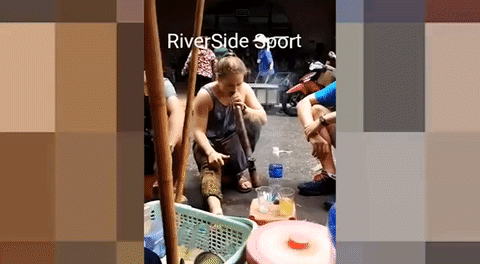 Một cô gái Tây đã trải nghiệm hút thuốc lào lần đầu tiên. Cô nàng bị say và ngã lăn ra giữa phố. Nữ du khách nước ngoài ngồi rít điếu cày như đúng rồi.