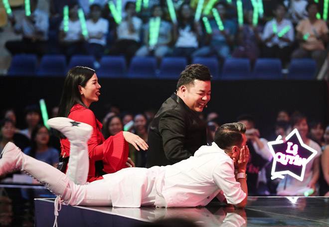 Vì quá phấn khích với tiết mục này, Ngọc Sơn đã có màn nhảy múa "điên cuồng" khiến người xem cười ồ. Mr. Đàm thậm chí “nằm dài” trên sân khấu, còn Lệ Quyên, Quang Lê đã chịu thua ngồi bệt xuống đất để xem màn "quẫy" có một không hai của "ông hoàng nhạc sến".