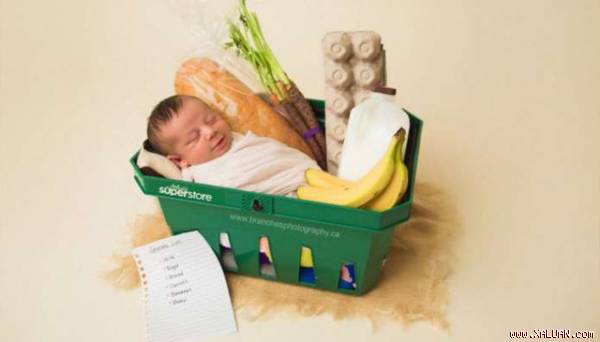 Để kỷ niệm ngày Ezra đến với thế giới theo cách hết sức đặc biệt, Ezra đã được đặt nằm trong chiếc giỏ xách hàng trong siêu thị để chụp ảnh sơ sinh.