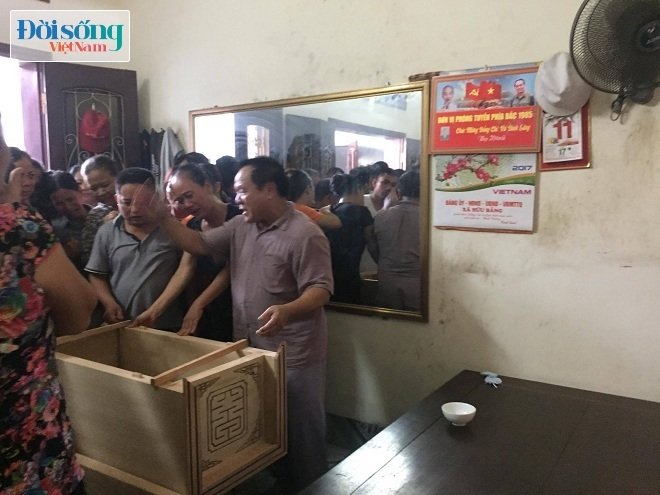 Thi thể cháu bé đang được đưa vào quan tài, người thân gào khóc đau lòng