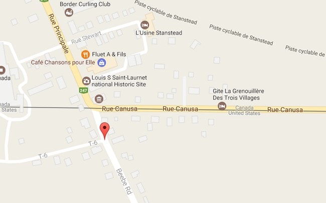 Từ cảng nhập cảnh của Cơ quan Dịch vụ Biên giới Canada, ngôi nhà của ông bà DuMoulin nằm đối diện với đường Rue Principale (Stanstead) và liền kề bưu điện Cục Hải quan và Biên phòng Hoa Kỳ.