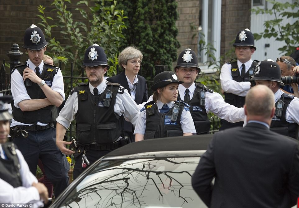 Trước đó cùng ngày, Thủ tướng Anh Theresa May đã gặp phải đám đông tức giận khi đến thăm nạn nhân, người dân, tình nguyện viên và các nhà lãnh đạo cộng đồng ở nhà thờ St Clement gần hiện trường vụ hỏa hoạn.