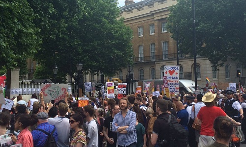 Người biểu tình tụ tập trước dinh Thủ tướng Anh. Ảnh: The Guardian.