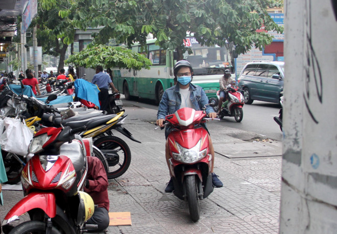 Người dân chạy vô tư chạy xe máy lên vỉa hè. Ảnh: Lê Trai.