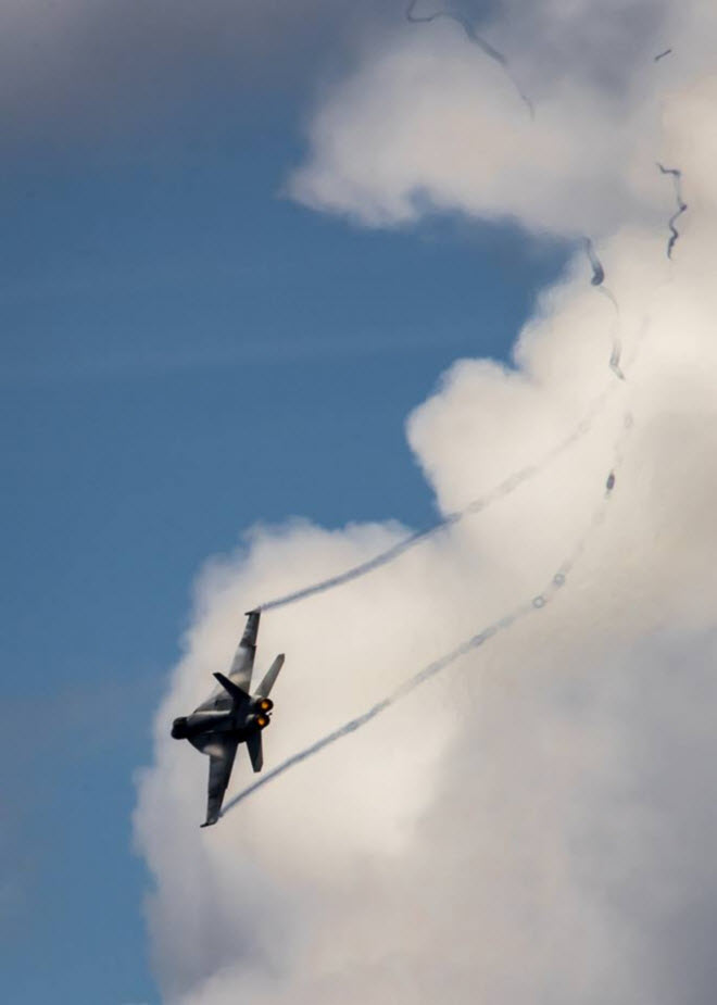 Chiến đấu cơ F/A-18 Super Hornet bay lượn gần tàu sân bay USS Carl Vinson ở ngoài khơi bờ biển Hawaii.