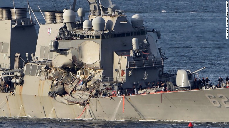 Cú đâm trực diện của một tàu chở hàng có trọng tải gấp 3 lần khiến 7 thủy thủ tàu khu trục Mỹ thiệt mạng trong khoang ngập nước. Thuyền trưởng và hai thủy thủ người được đưa đến bệnh viện khẩn cấp bằng trực thăng.