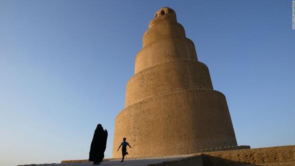 Thánh đường Samarra, Iraq: Thánh đường lớn nhất thế giới được xây dựng vào thế kỷ thứ 9 sau Công nguyên trên bờ sông Tigris, miền bắc Iraq. Nơi đây nổi bật với Tháp Malwiya, cao 52 m, với cấu trúc hình xoắn ốc. Người Hồi giáo có thể leo lên các bậc thang theo hình xoắn ốc lên tới đỉnh tháp để cầu nguyện. Công trình đã bị hư hại nặng sau một cuộc đánh bom vào năm 2005. Ảnh: Getty.