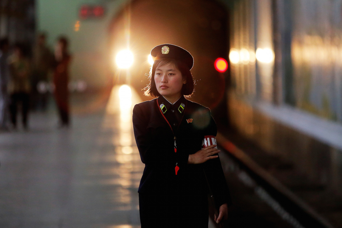 Nữ công nhân đường sắt ở Bình Nhưỡng.