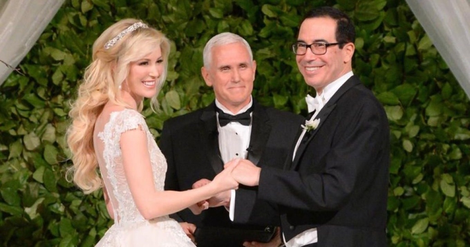 Bộ trưởng Tài chính Mỹ Mnuchin, 54 tuổi, kết hôn với nữ diễn viên người Scotland Louise Linton, 36 tuổi, hôm 24/6 dưới sự chứng kiến của khoảng 300 khách mời, trong đó, có vợ chồng Tổng thống Donald Trump và vợ chồng Phó Tổng thống Mike Pence, CNN đưa tin.