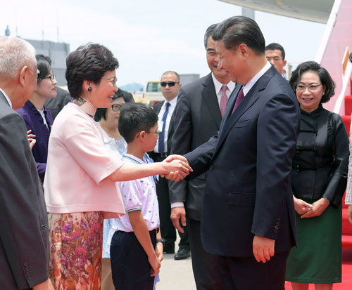 Phát biểu ngay tại sân bay, ông Tập Cận Bình cho biết 3 mục đích của chuyến thăm kéo dài 3 ngày này: Gửi lời chúc mừng nhân kỷ niệm 20 năm ngày Anh trao trả Hồng Kông cho đại lục; thể hiện sự ủng hộ của Bắc Kinh với đặc khu; định hình tương lai cho địa phương và bảo đảm chính sách "một quốc gia, hai chế độ" tiếp tục được thực thi trơn tru.