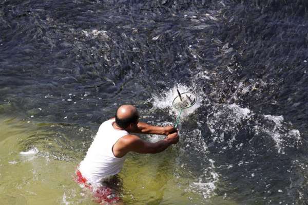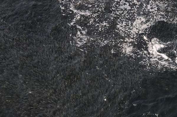 ▼ Trong nhóm có một người đàn ông bình tĩnh qua sát, thình lình phát hiện hóa ra là một đàn cá tụ tập cùng một chỗ theo thủy triều tiến vào bờ.