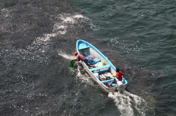 ▼ “Có khoảng 20 30 ngư dân cùng với con của họ đã tận dụng cơ hội hiếm có này để để đánh bắt cá“, Carlos Morales, một người chứng kiến hiện tượng kỳ lạ này, kể lại.