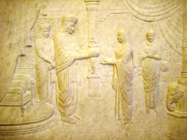 Xung quanh các bức tường bên trong Bảo Tháp được chạm khắc các bức tranh với nội dung nói về cuộc đời của Đức Phật. Tranh được khắc vào loại đá quý hiếm, màu sắc, đường nét cũng tạo nên sự huyền bí như cuộc đời của Đức Phật.