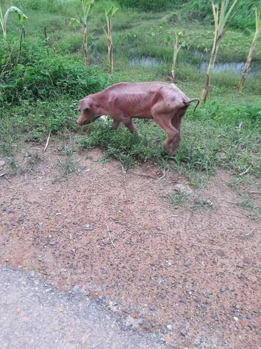 Khi heo ở Việt nam rớt giá thê thảm dẫn đến tình trạng người nông dân bị thua lỗ.Người nuôi heo gần như không cho heo ăn hoặc chỉ cho ăn một ít để khỏi chết.Mới đây xuất hiện hình ảnh một con heo gầy trơ xương bị đuổi đi rất đáng thương.