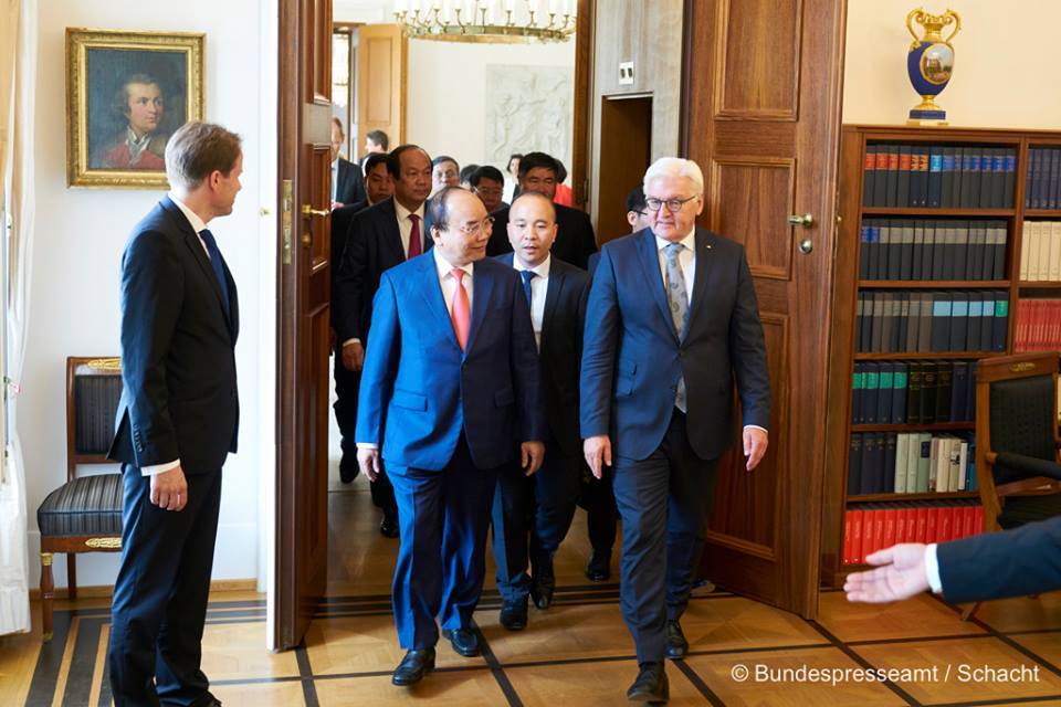 Trước đó cùng ngày lúc 16:30, TT Phúc đã được Tổng thống Frank-Walter Steimeier tiếp xã giao tại Phủ Tổng thống Bellevue. Trên trang cá nhân Bundespräsident Frank-Walter Steinmeier, tổng thống Đức viết: