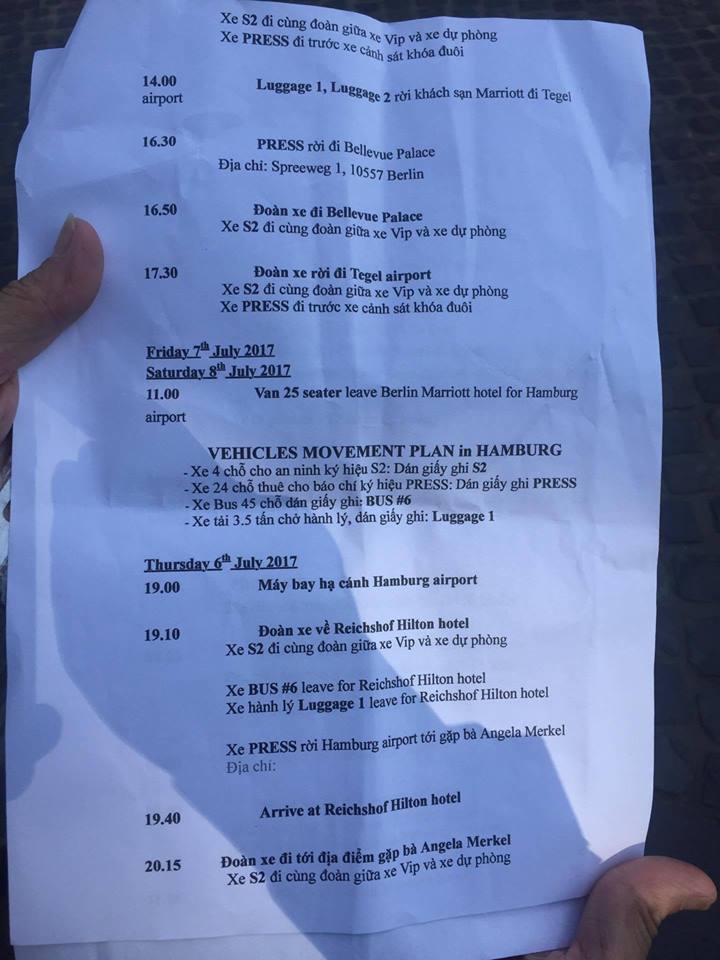 Theo những nguồn tin trước đó từ Đức v/v bà Angela Merkel bận không tiếp ông Phúc. Tuy nhiên, vào 20:30 đêm qua 6.7, bà Merkel đã có cuộc gặp với ông Phúc tại khách sạn Atlantic, Hamburg. Đây là nơi Đức thuê để tiếp Thủ tướng Úc, Tổng thống Mỹ, Thủ tướng Thổ Nhĩ Kỳ; ông Phúc và đoàn Việt Nam ở Hotel kế bên nhà ga Hamburg cách đó khoảng 1 km.