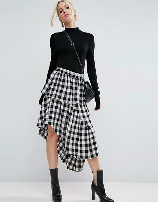 Chân váy caro xếp tầng là sự lựa chọn hoàn hảo cho những quư cô chuộng phong cách điệu đà. Chỉ cần mix với áo phông đơn giản cũng đủ giúp bạn nổi bật rồi.
