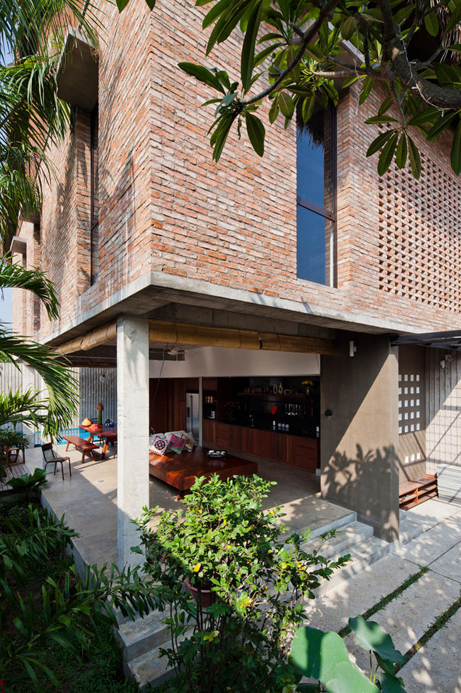 Ai cũng xuýt xoa khi đến thăm ngôi nhà độc lạ của Sài Gòn. Ngôi nhà có mái lá mát mẻ với tường gạch mộc mang dáng dấp của kiến trúc xen kẽ xưa và nay. Ngôi nhà này được tạp chí ArchDaily đăng tải và dành nhiều lời khen cho kiến trúc độc đáo và thông minh.