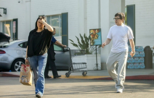 Đi cùng vợ, Thành Long nở nụ cười tươi và vẫy chào ống kính máy ảnh. Ông thảnh thơi đi phía sau vợ trong khi Lâm Phụng Kiều tay xách đồ. Dù đi cùng nhau tới siêu thị nhưng hai vợ chồng Thành Long đi khá cách xa nhau và cũng không nói với nhau nửa lời. Sau đó, cả hai nhanh chóng rời đi.