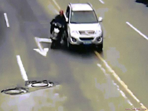Sự việc xảy ra ngày 6.7 tại thành phố Lan Khê, tỉnh Chiết Giang, Trung Quốc. Đoạn video do camera giám sát ghi lại cho thấy người đàn ông điều khiển mô tô di chuyển sát một chiếc ô tô trên đường phố.