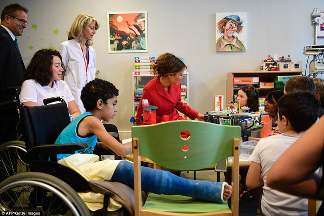 Bà Melania đă dành khoảng nửa giờ đồng hồ để tới thăm bệnh viện Necker (Ảnh: AFP)