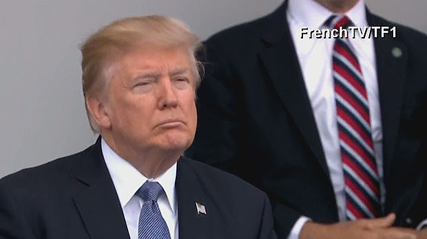 Khi ban nhạc của quân đội Pháp chơi bài Get Lucky với giai điệu vui nhộn kỷ niệm Quốc khánh 14/7, ông Trump giữ nét mặt khá căng thẳng, RT đưa tin.