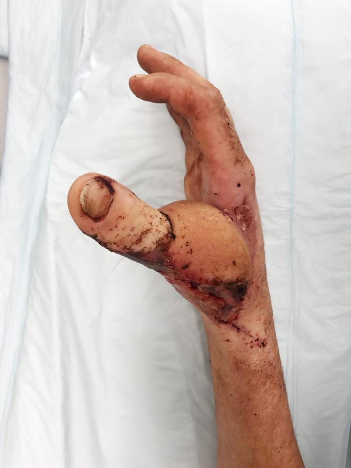 Anh tưởng mình sẽ được gắn ngón tay giả, nhưng các bác sĩ đề nghị dùng ngón chân cái của anh để thay thế.